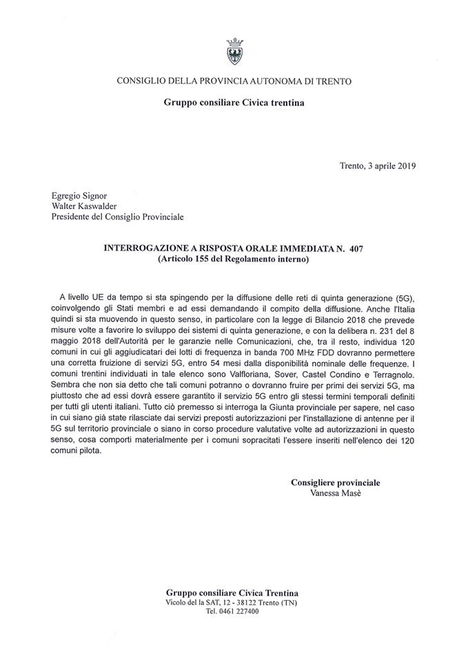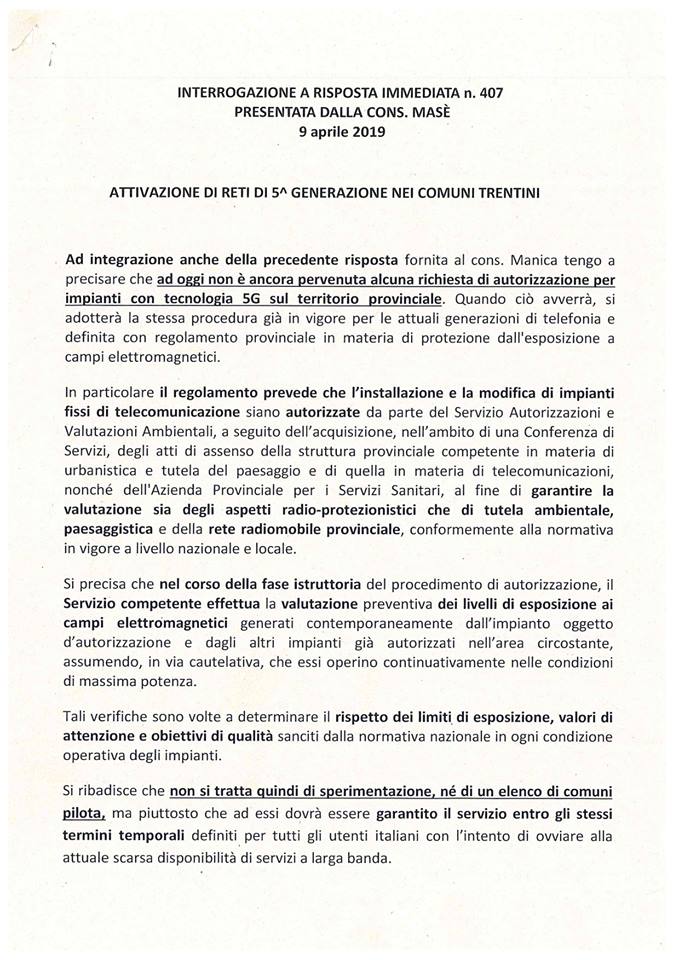 La UE sta spingendo sugli Stati membri per la diffusione delle reti di quinta generazione, le cosiddette 5G, una nuova tecnologia digitale molto più potente di quelle fino ad ora utilizzate. Molte sono le domande che scaturiscono da più parti e a queste domande ho cercato, nella mia attività di Consigliere, di avere delle risposte che cominciano a fare un po’ di chiarezza e mi riserverò di approfondire l’argomento con future iniziative di informazione.