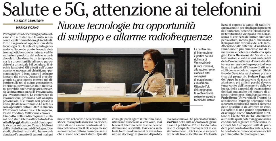 Importante momento di approfondimento, proposto dalla Cons. Vanessa Masè, sui rischi e potenzialità del 5G in Trentino.