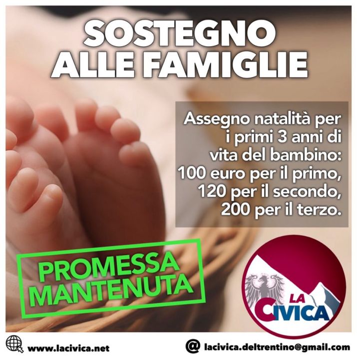 La maggioranza di governo in Trentino ha ricalibrato ulteriormente la portata dell’assegno natalità, aumentandone l’importo anche rispetto a quanto anticipato durante l’appuntamento conclusivo degli Stati Generali della Montagna.