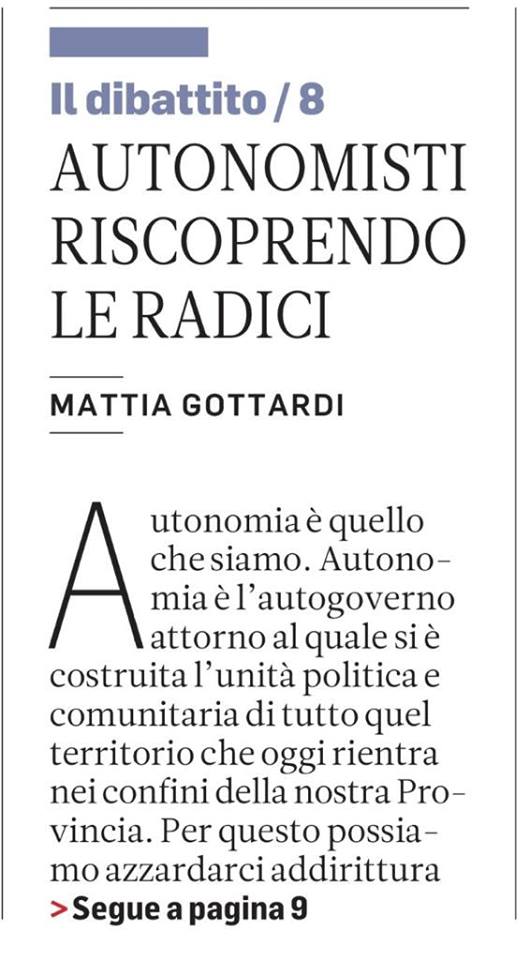 Autonomia è quello che siamo. Autonomia è l’autogoverno attorno al quale si è costruita l’unità politica e comunitaria di tutto quel territorio che oggi rientra nei confini della nostra Provincia.