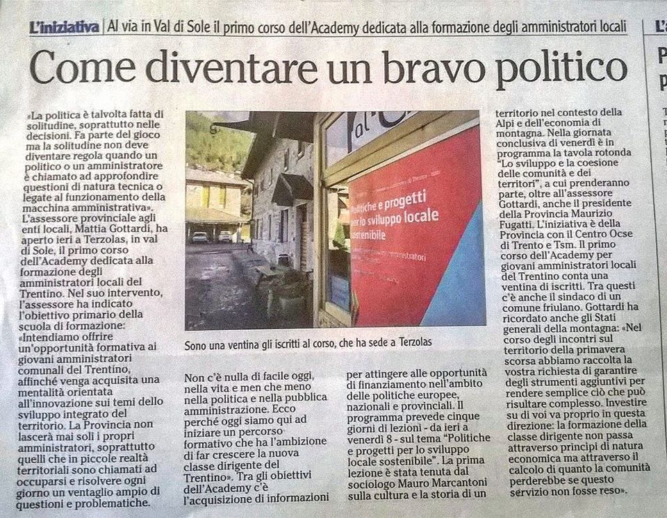 “La politica è talvolta fatta di solitudine, soprattutto nelle decisioni. Fa parte del gioco ma la solitudine non deve diventare regola quando un politico o un amministratore è chiamato ad approfondire questioni di natura tecnica o legate al funzionamento della macchina amministrativa”