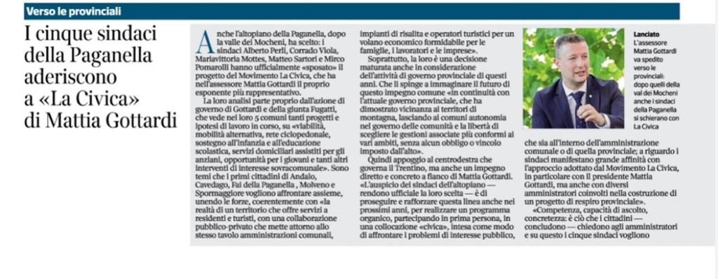 Noi sindaci manifestiamo grande affinità con l’approccio del movmento “La Civica”. Con queste parole il sindaco di Andalo, Alberto Perli, suggella l’entusiasmo per il movimento ed i suoi valori. Un passo importante per il movimento sempre più radicato in vista delle prossime elezioni provinciali 2023.